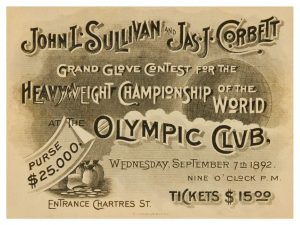 Sullivan fue derrotado en pelea de Boxeo con guantes por el famoso «Gentleman» Jim Corbett ,quien fue el precursor del boxeo moderno , con gran juego de piernas, velocidad y ataque . Venció por KO a Sullivan en New Orleans , el 7 de febrero de l892 y obtuvo el título mundial noqueándolo en el round 21 , luego de bailotear y jabear toda la pelea eludiendo las embestidas de Sullivan para también convertirse en una estrella total en aquellos años .